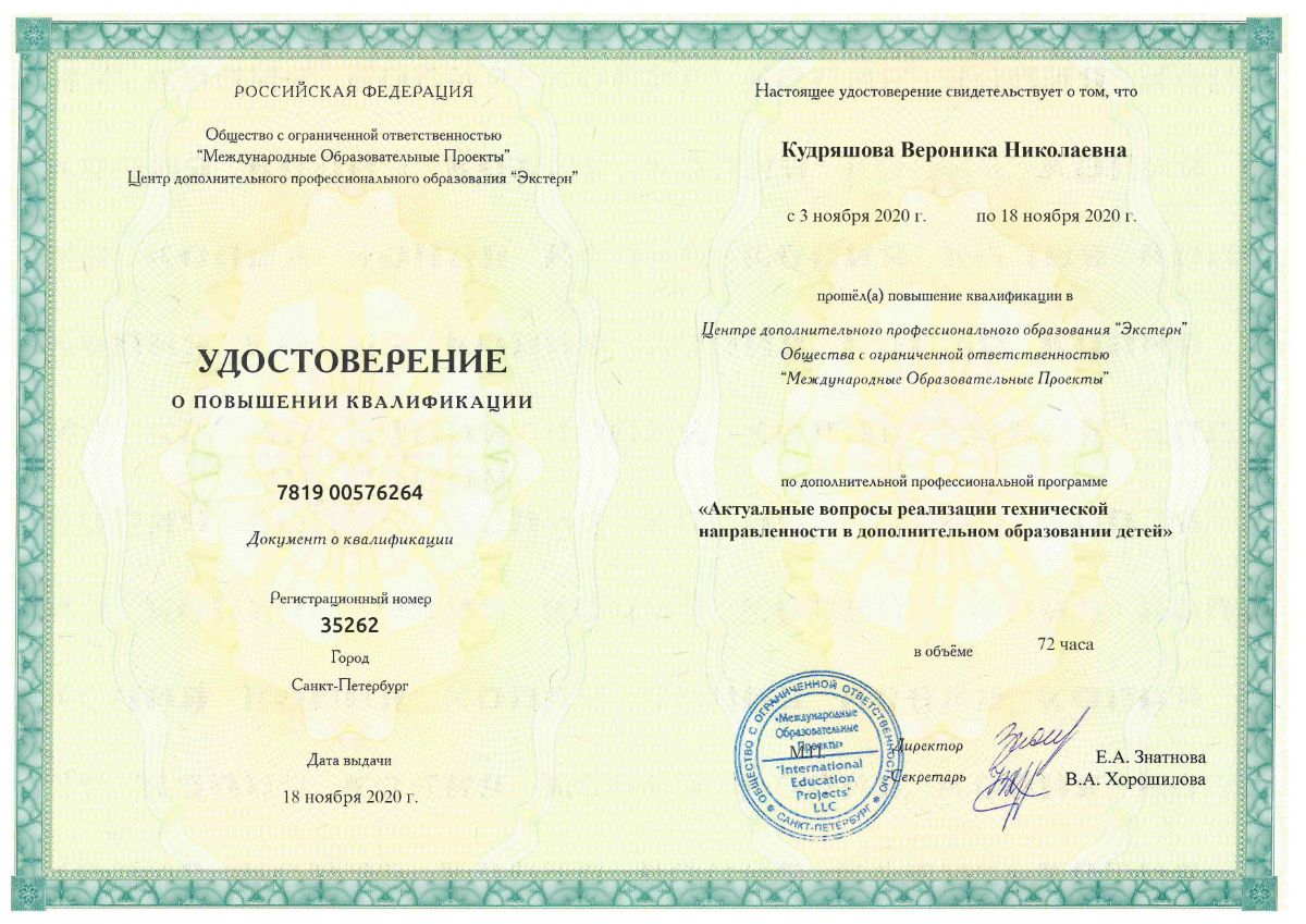 «Актуальные вопросы реализации технической направленности в дополнительном образовании детей». 72ч. г. Санкт-Петербург
