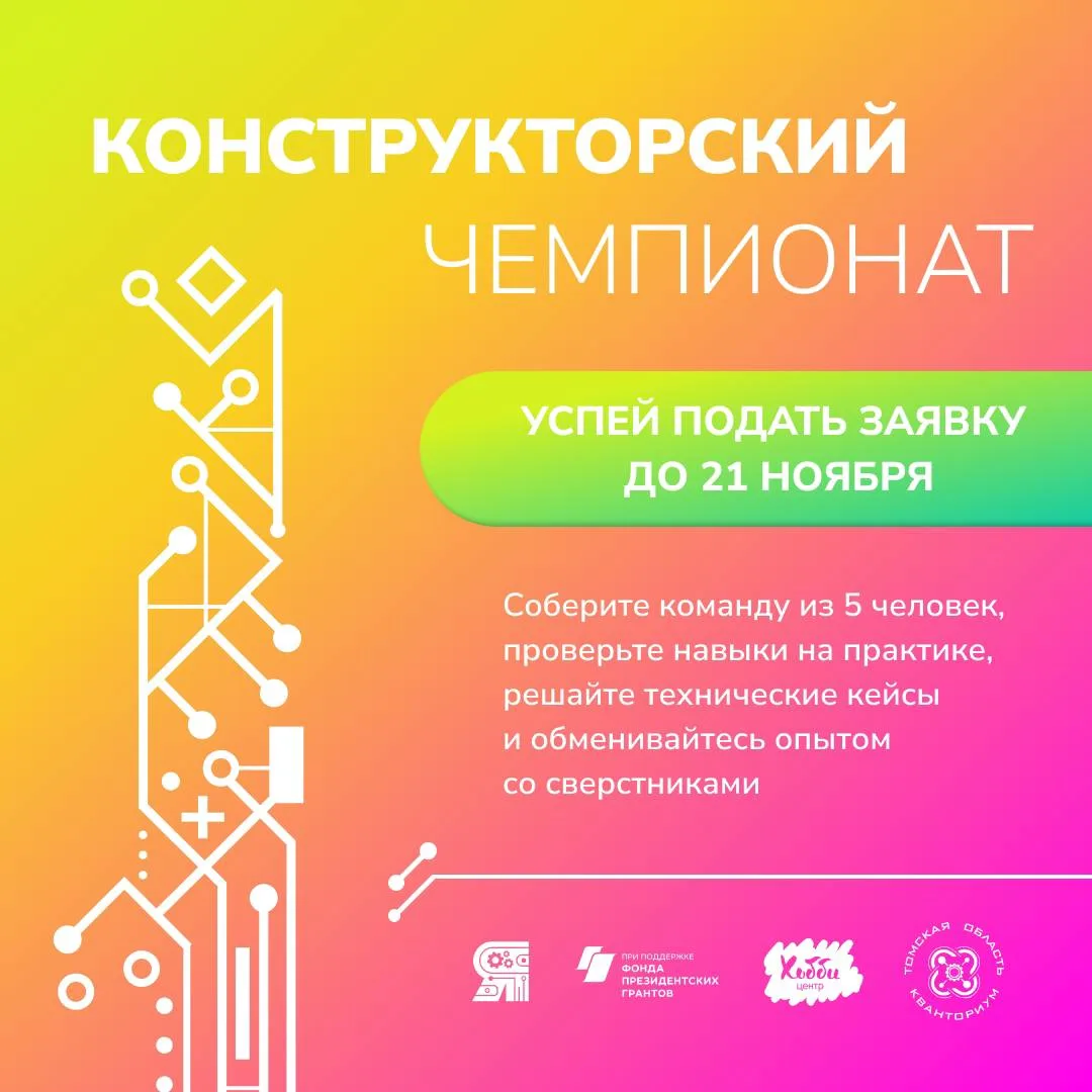 До 29 ноября 2025 – полуфинал: практическое задание в дистанционном формате 13 декабря 2025 – очный финал в городе Томске: командный кейс, в тот же день объявим 3 команды‑победителя!
